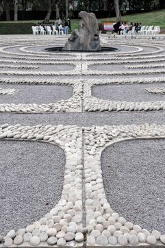 Every May 31, a commemoration takes place at the memorial named el Ojo que llora (The eye that cries in Spanish), in Lima's Santa Maria district. El ojo que llora is a work of art by Lika Mutal and was inaugurated in 2005. It is a tribute to the victims of the Peruvian Internal Conflict, which claimed almost 70,000 lives between 1980 and 2000. It's a labyrinth of concentric circles made of stones, each one marked with the name of a victim, with a stone at its center that lets water flow through it. Some larger stones, such as that of the Gardenias, represent collective massacres.