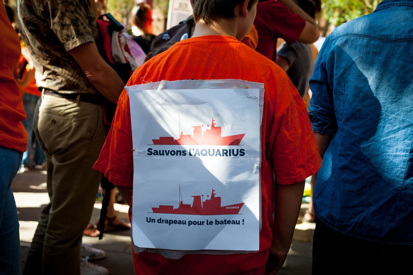 On Saturday, October 6 2018, Place Saint Pierre in Toulouse, more than a thousand people responded to the call of SOS Méditérranée, in support of their ship Aquarius, blocked at the dock in Marseille since October 4. Many wore orange, as a reminder to the hull of the boat.