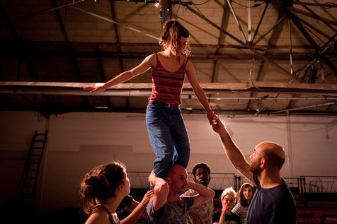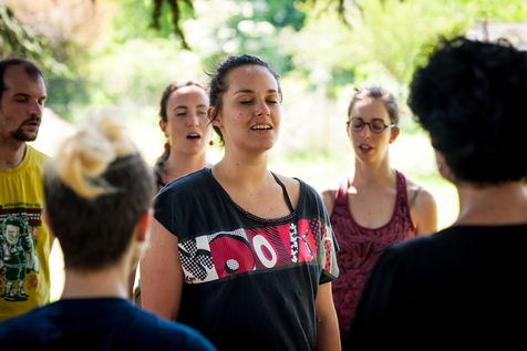 The training provided by the Théâtre du Fil is organized around three axes: continuing education workshops (body, voice, circus, dance, staging, etc.), creative projects (of the show to be performed during the summer tour), and entertainment. In accordance with the principle of mixing populations, the Théâtre du Fil sets up a certain number of partnerships with other structures welcoming people in difficulty: the Institut Médico-Éducatif (IME), the Centre Éducatif Fermé (CEF), prison centres, the Centre d'Accueil pour Demandeurs d'Asile (CADA), children living in so-called "sensitive" districts, etc. It also occasionally welcomes future social workers studying in schools in the Île-de-France region. These times make it possible to create a meeting between the Fil's young trainees and other audiences. The objective is to mix audiences, to provoke the encounter that may not have taken place anywhere else, to grow in contact with the other.