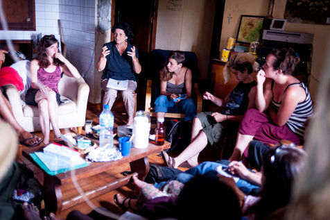 The primary goal of the school company is to do theatre together - and therefore, to make theatre a meeting. This vision makes it possible to exclude the notion of art therapy, with which this structure does not wish to be associated. The Théâtre du Fil, combining social and artistic aspects in its own way, includes an educational team (educators' actors and educators' actresses), which is an integral part of the troupe. Thus, young people and educators are "on the set" or "on the carpet", and also share moments of daily life.
