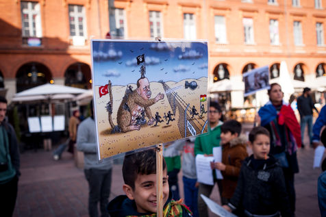 On October 16th 2019, the Kurdish community of Toulouse organised a rally on the Place du Capitole with children, who are boycotting the school today, in order to alert public opinion and show their anger at the attack on the Rojava by Turkish President Erdogan.