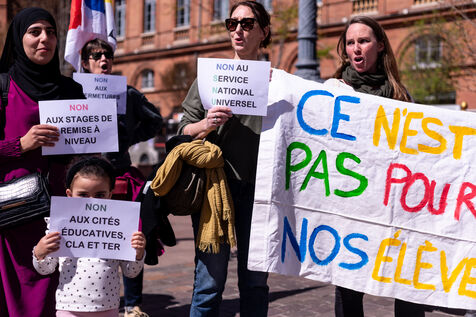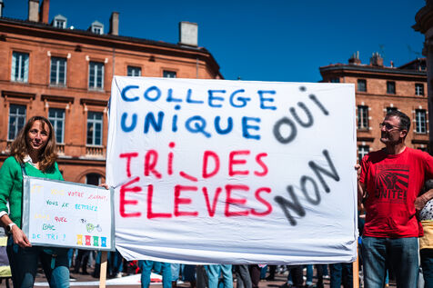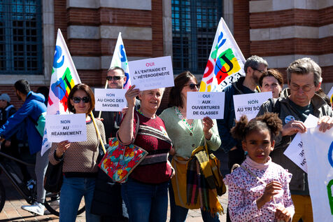 The "choc des savoirs" is still not acceptable for education staff. Demonstration of teachers and education staff, following a call for strike action on Tuesday April 2, 2023. They are not budging on the measures announced by Prime Minister Gabriel Attal.
