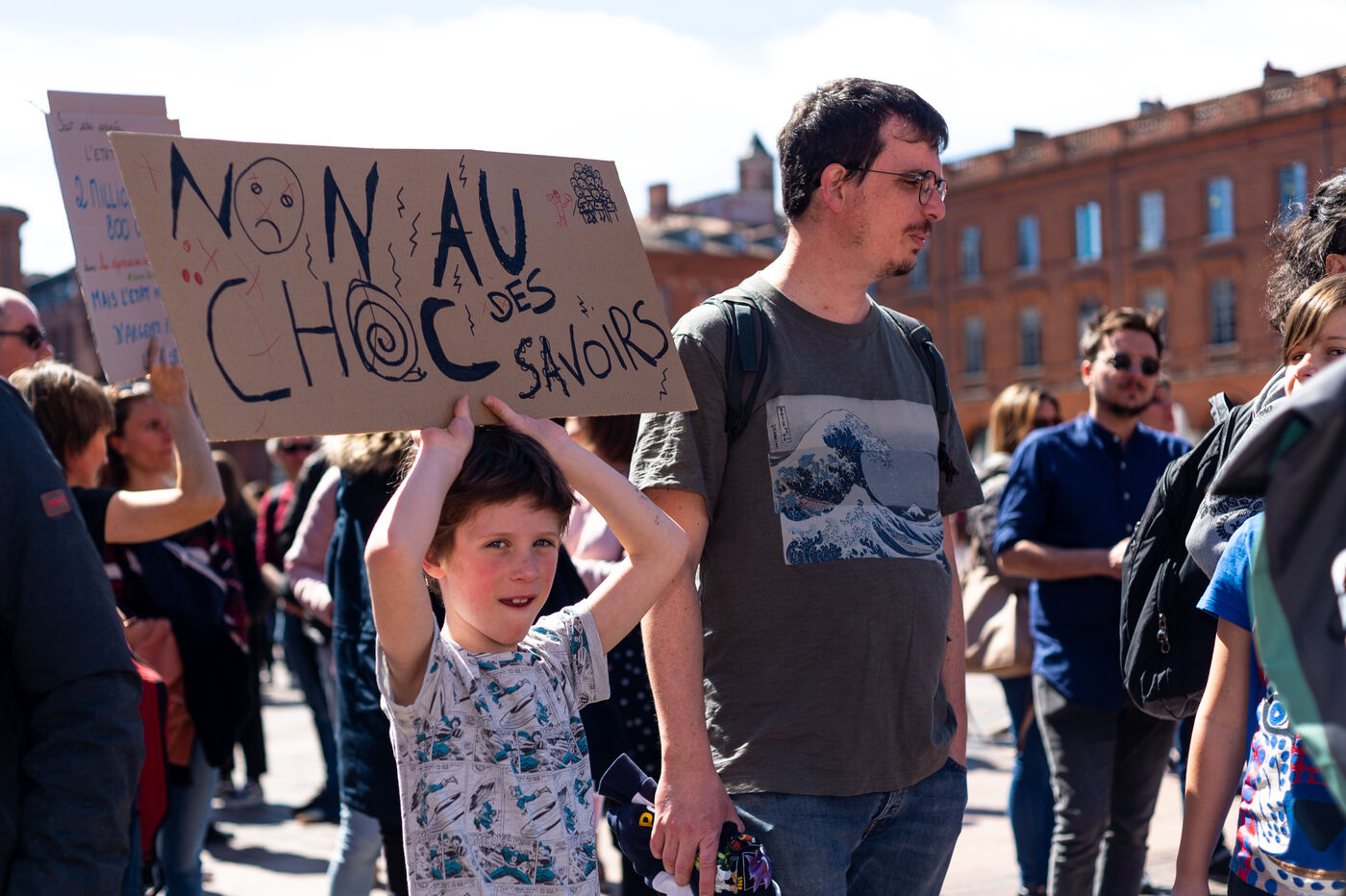 Le choc des savoirs, ça ne passe toujours pas pour les personnels de l'éducation. Manifestation des enseignants et personnels de l'éducation, après un appel à la grève mardi 2 avril 2023. Ils ne décolèrent pas des mesures annoncées par le premier ministre Gabriel Attal.