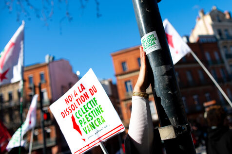 Demonstration against the dissolution of the Palestine Vaincra collective in Toulouse on February 1st, 2025