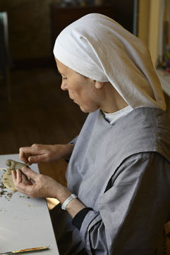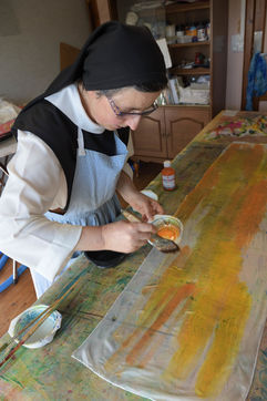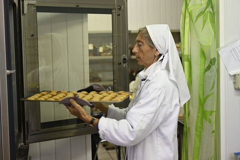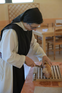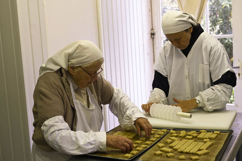 The community of Sainte-Marie du Rivet Abbey brings together fourteen Trappistine nuns of different origins and, for some, of different nationalities. Faithful to the rule of Saint Benoit "prayer and work", they pray seven times a day with a first office at 4:30 am (Vigils, early morning office) and work for monastic craftsmanship of recognized quality. Thus, since manual labor is fundamental in Cistercian spirituality and monasteries live from their small businesses, a task is assigned to each nun of the abbey. Some nuns make biscuits (cakes, shortbread, macaroons) others santons, candles and painted silk scarves.