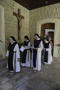 A l?issue de l?office des Vêpres, en fin d?après-midi, la Communauté des moniales cisterciennes et les laïques entament une procession jusqu?à la grotte située sur le domaine de l?abbaye et point fort de cette cérémonie.