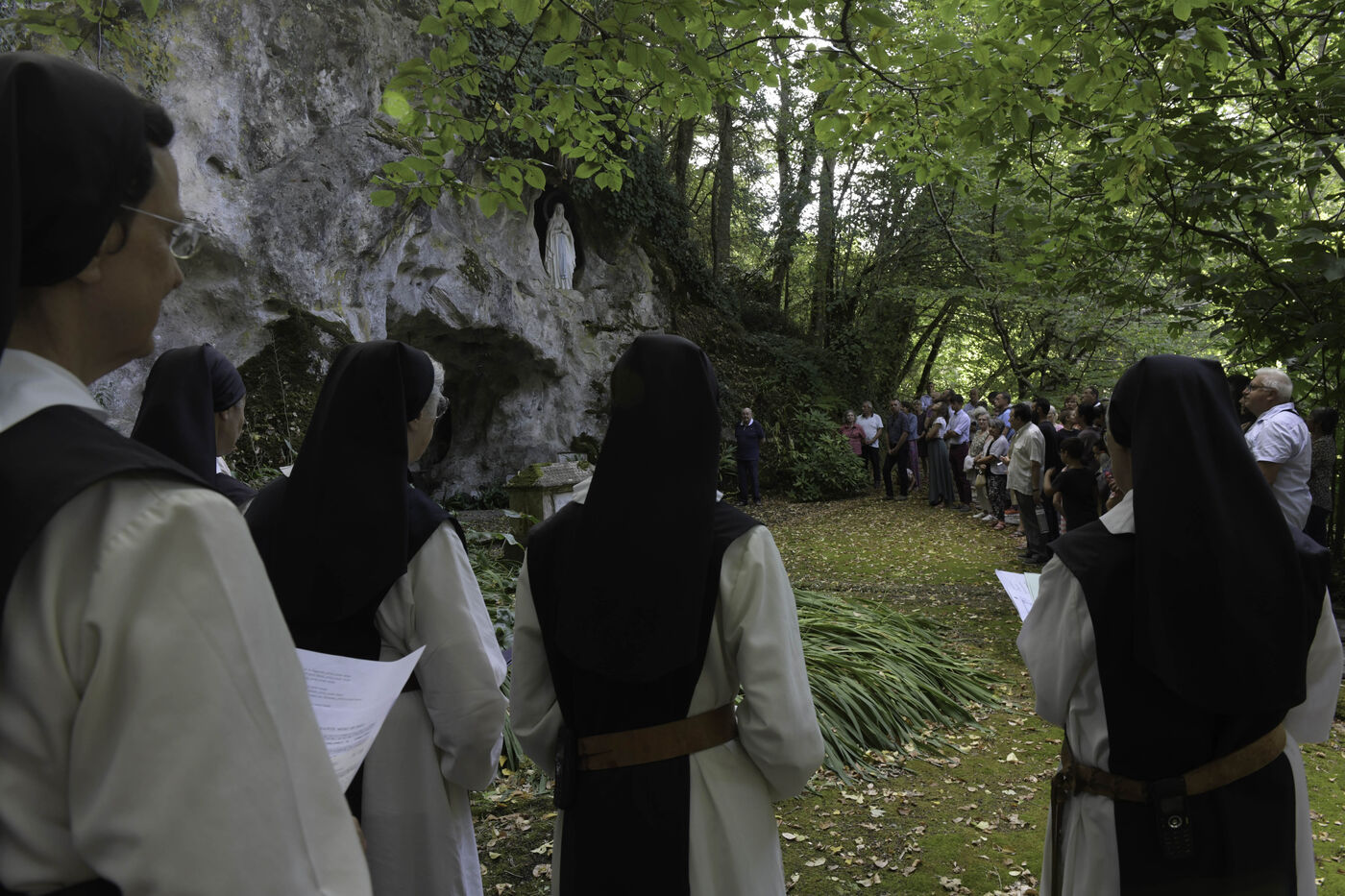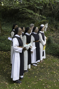 At the end of the Vespers service, at the end of the afternoon, the Community of Cistercian nuns and the laity begin a procession to the grotto located on the grounds of the abbey and the highlight of this ceremony.
