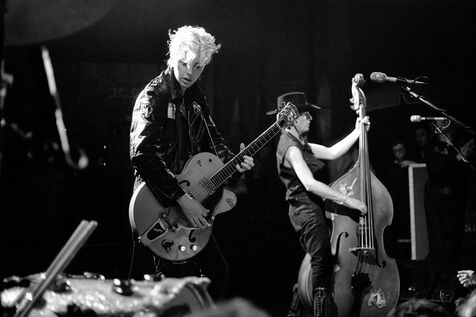 After several years in New York clubs, the Stray Cats set London on fire in the early 1980s. Close to the Teddy Boys and the punks, the three musicians played a supercharged rockabilly on stage with rudimentary means : Brian Setzer on vocals and Gretsch guitar, Slim Jim Phantom on double bass, Lee Rocker on snare and cymbal played standing up. They performed in Thônex (Geneva) in May 1981 (date unknown) on their first European tour. After a brief lifespan, the Stray Cats are back for a US tour in 2024.