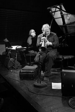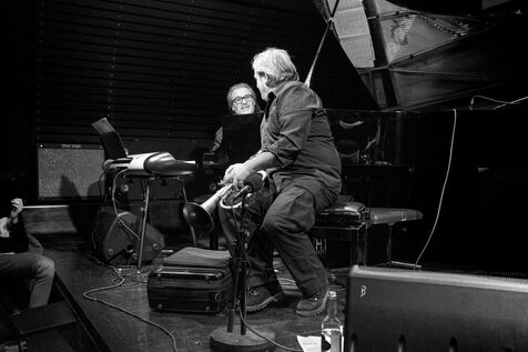 Pianist Thierry Lang began recording as a trio for the Blue Note label in 1996, inspired by the melodic sensibility of Bill Evans. For over 30 years, he has led projects with his bugle-playing friend Matthieu Michel, a former member of the Vienna Art Orchestra. Both born in Fribourg, they are among the few Swiss jazz musicians with international careers. For his 65th birthday in December 2021, he performedat Club Chorus in a 5tet to play Turn to Funk, with Matthieu Michel (bugle), Mimmo Pisino (bass), Luigi Galati (drms) and Andi Pupato (perc).