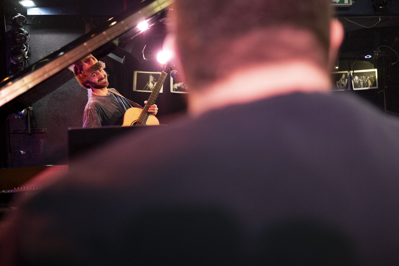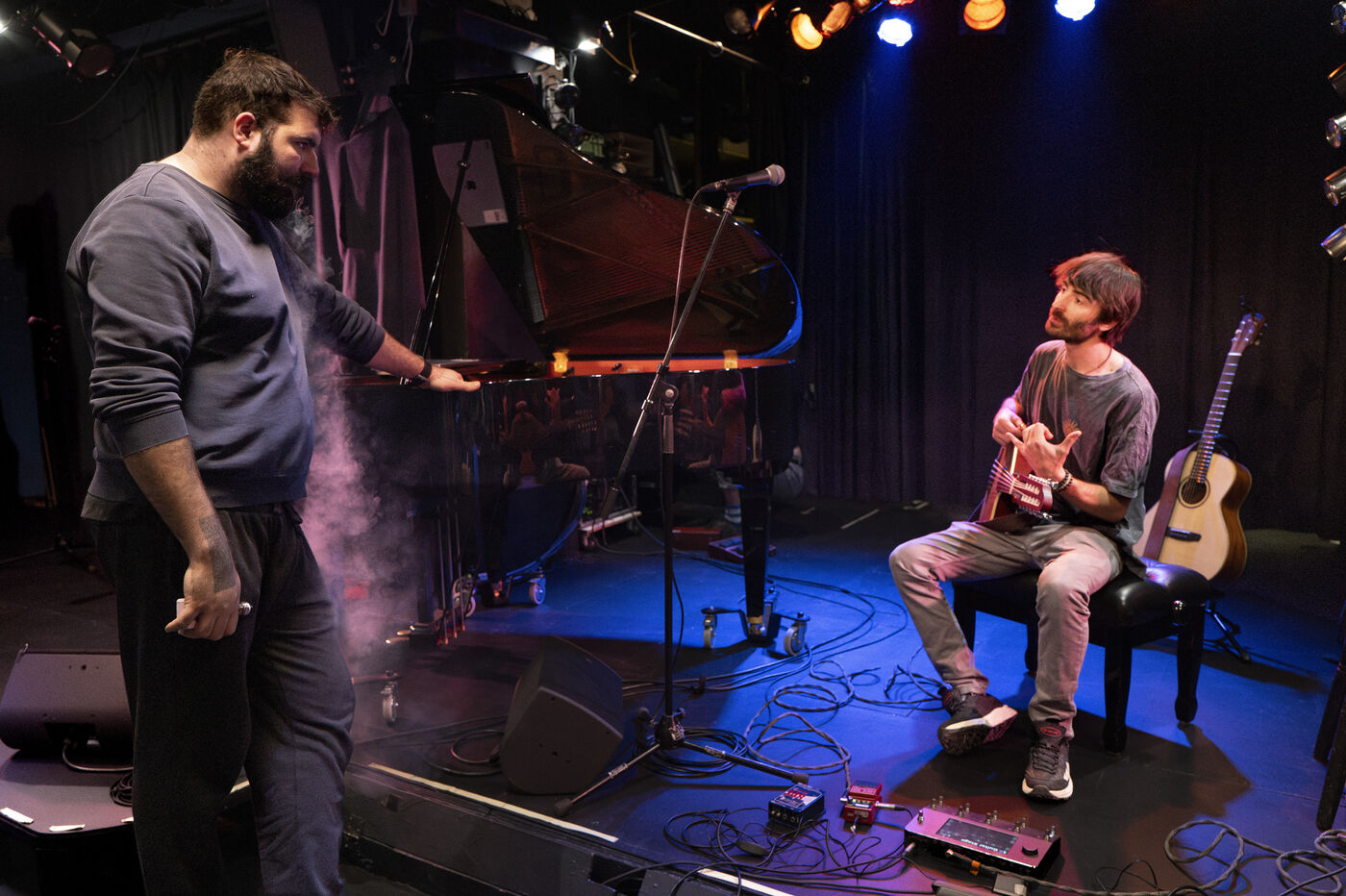 In November 2024, young guitar virtuoso Vincent Schmidt takes the stage in a duo with Natan Niddam on piano at the club L’Esprit Frappeur for the soundcheck of the premiere of their album We'll Get There, Eventually.