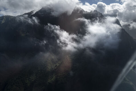 More than a hundred volcanoes have risen from the floor of the Pacific Ocean, some 5,000 to 6,000 meters below the surface, to form the Hawaiian archipelago. Some of these volcanoes are still active and have a major impact on human activities.