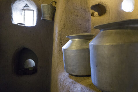 Listed as a UNESCO World Heritage Site, the historic fortresses and villages of the Sultanate of Oman are built of earth with a few wooden support elements. Staircases, niches, openings and secret passageways are integrated into the thickness of the monolithic construction.