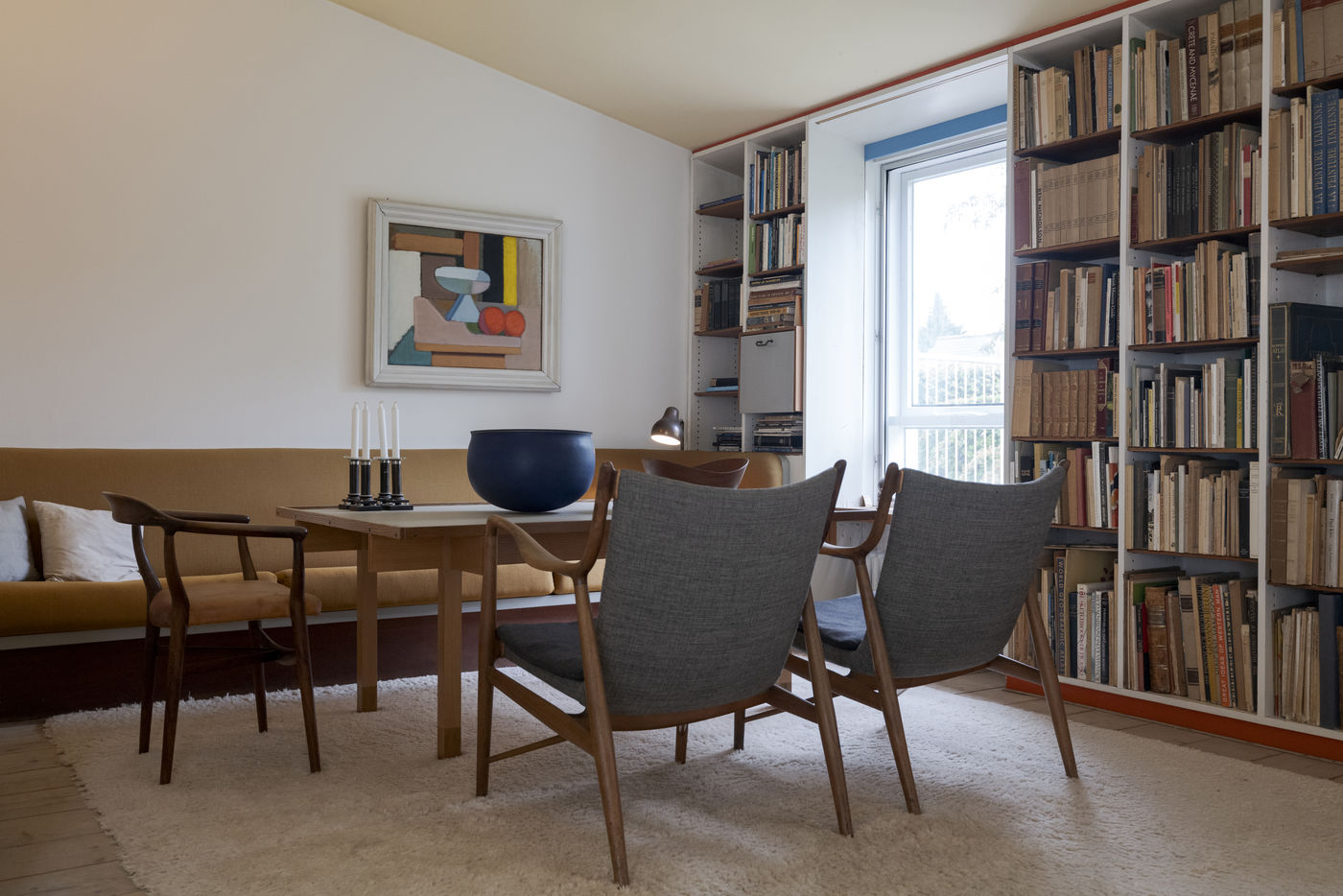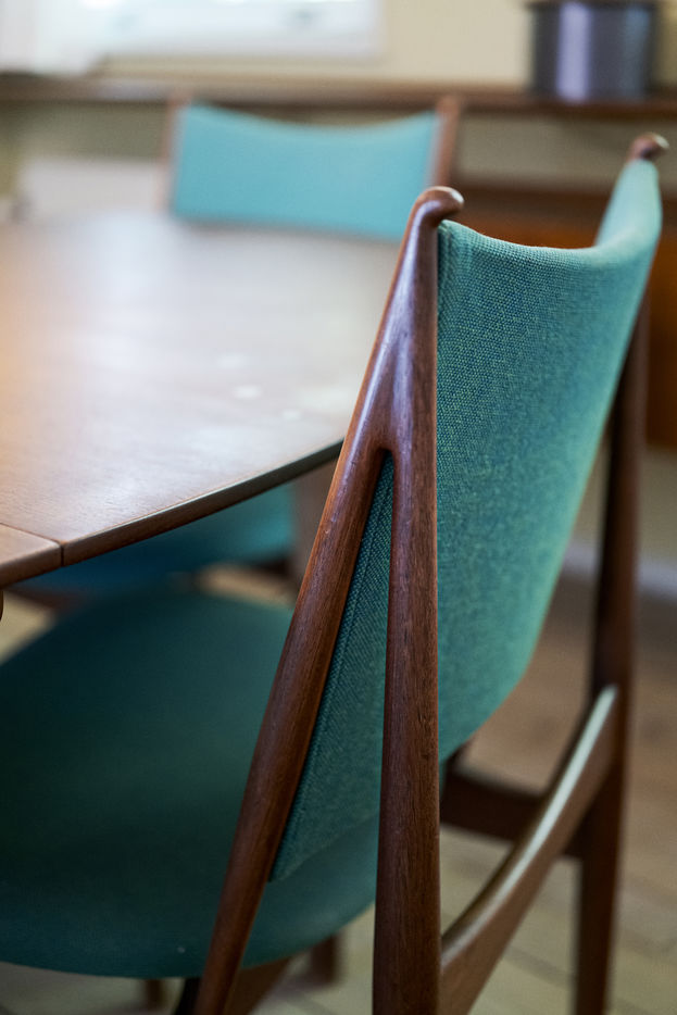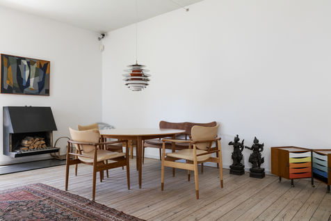Finn Juhls sculptural furniture designs are represented throughout the house. Among the you will find the Chieftain Chair, the Poet Sofa and the Silver Table to name just a few. Art also occupies the house: works by leading Danish artists of the time such as Vilhelm Lundstrøm, Asger Jorn, Erik Thommesen and Sonja Ferlov Mancoba were carefully selected by Finn Juhl. In keeping with Finn Juhls vision, the house constitutes a modernist Gesamtkunstwerk where architecture, design and art come together in a harmonious totality.