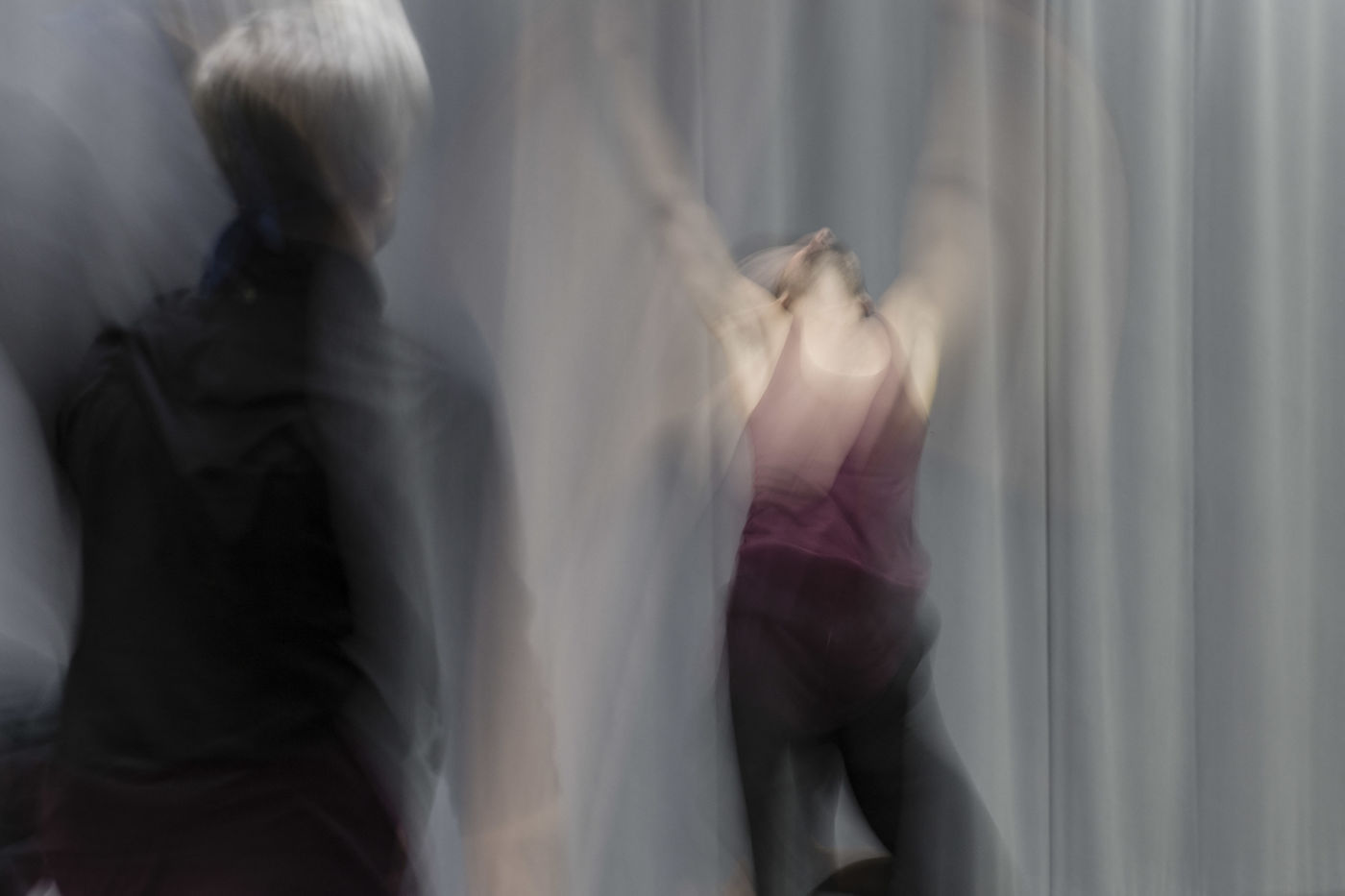The dancers of the Elisa Monte Dance troupe from New York in rehearsal at the Topaz Art Inc studio in Queens.