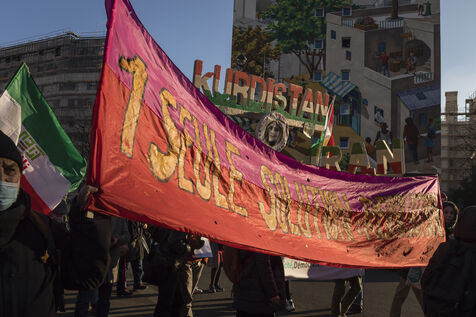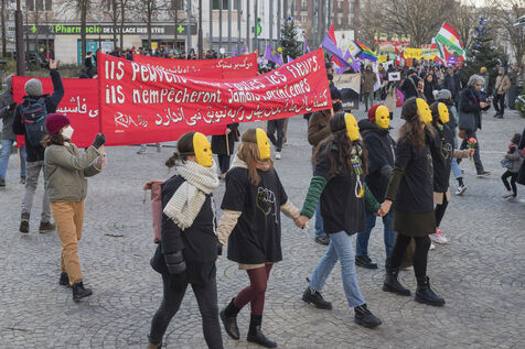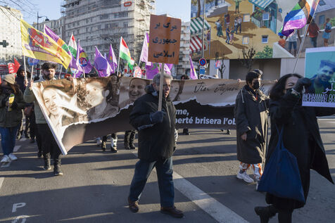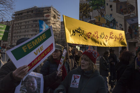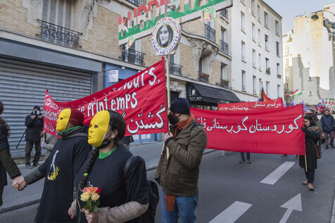 Rally on 21 January 2023 in Paris in support of the popular uprising in Iran, organised by Roja-Paris, and collectives of Iranian activists and feminists of the left. France, Paris, 2023-01-21.