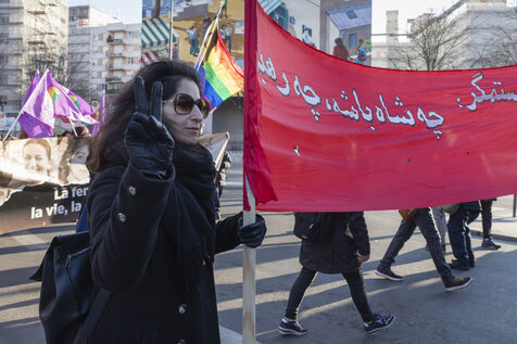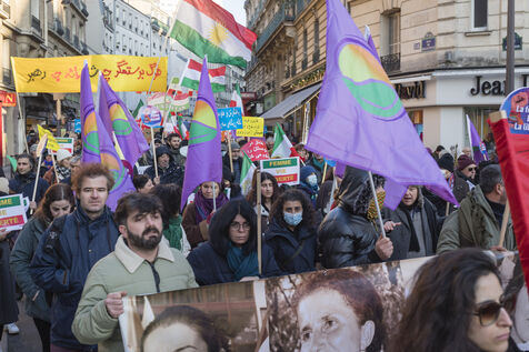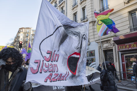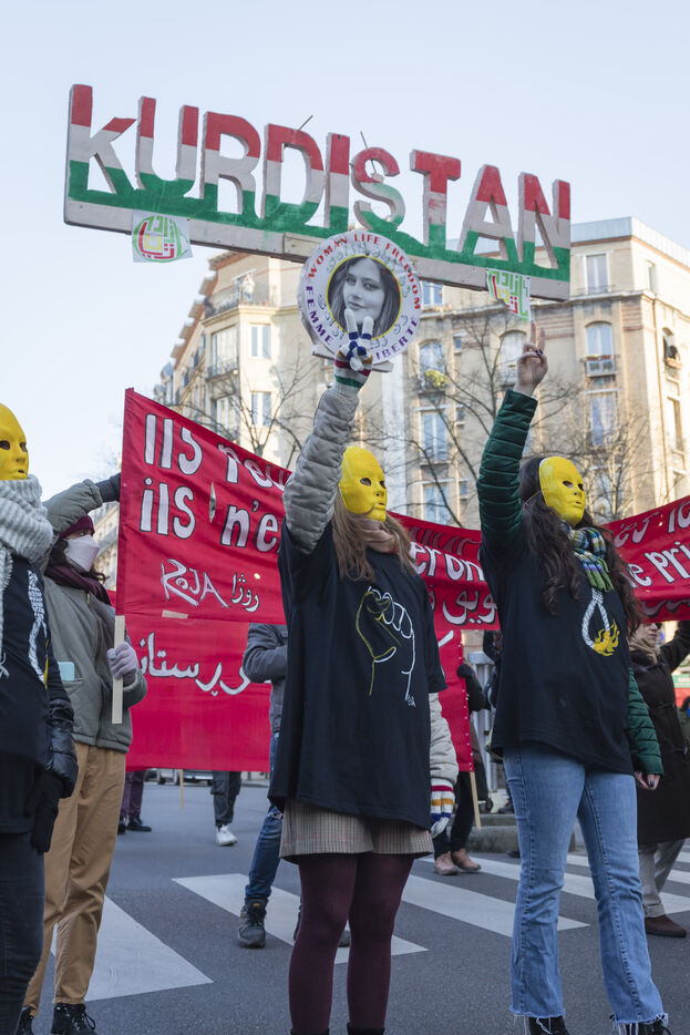 Rassemblement du 21 janvier 2023 à Paris en soutien du soulèvement populaire en Iran, organisé par Roja-Paris, et des collectifs de militantes iraniennes et féministes de gauche.