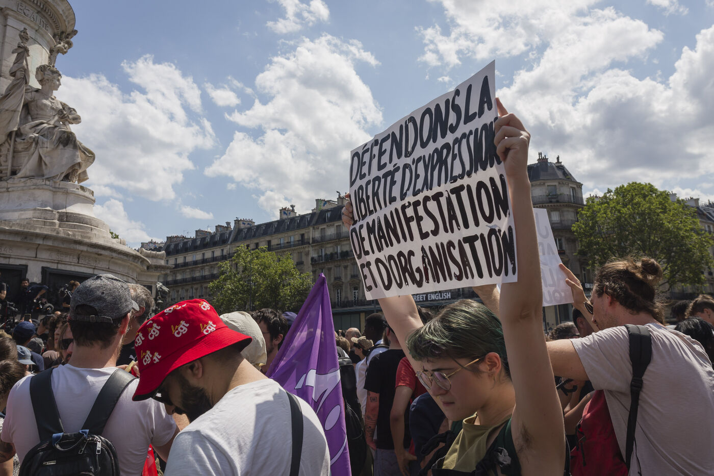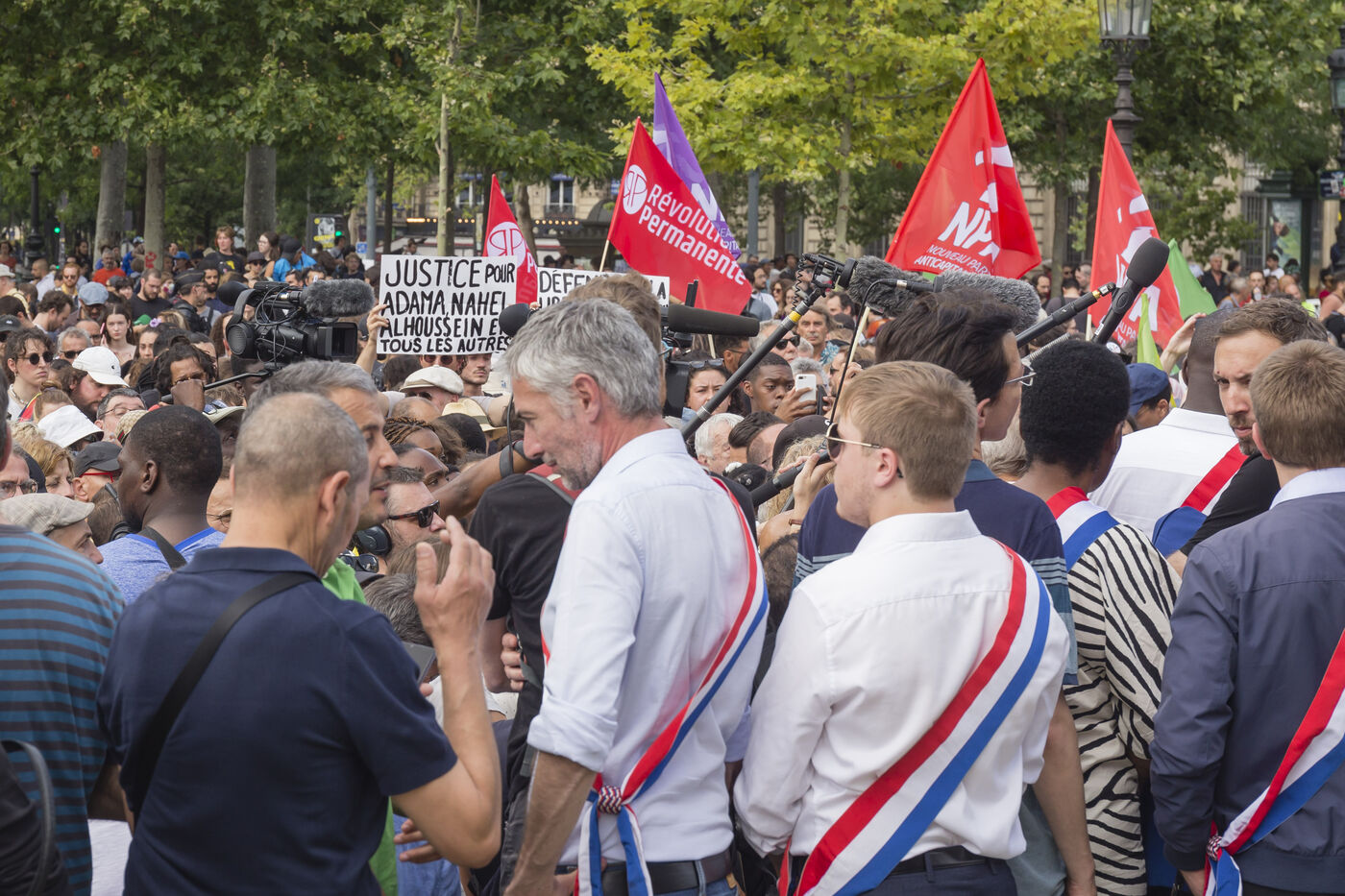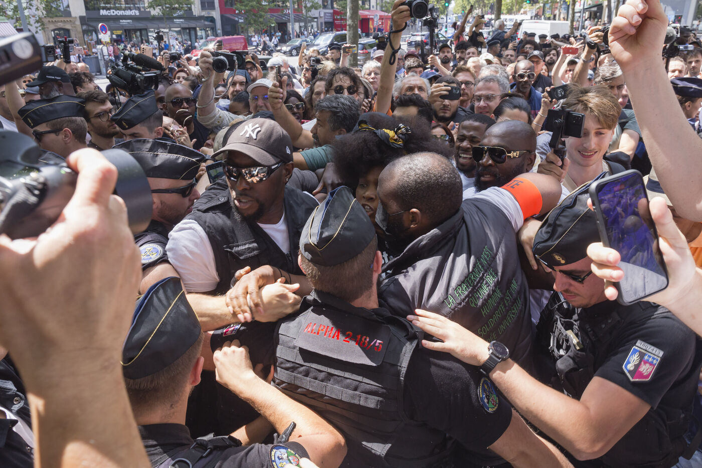 Despite the ban on the rally dedicated to Adama Traoré, who was killed by the police 7 years ago, hundreds of people gathered at Place de la République in Paris to listen to a speech by Assa Traoré, Adama's sister.