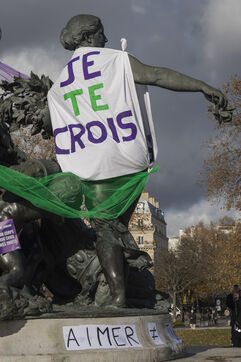 France, Paris, 2023-11-25. To mark the International Day Against Violence Against Women and Gender Minorities, the #NousToutes collective, which brings together feminist, Afrofeminist, transfeminist, LGBTQIA+ and anti-racist organisations, demonstrated in Paris, from Place de la Nation to Place de la République and throughout France, to put an end to sexist and sexual violence.