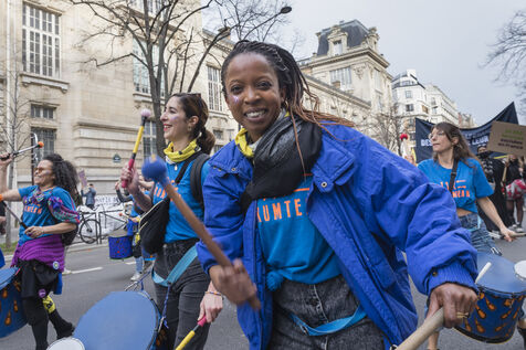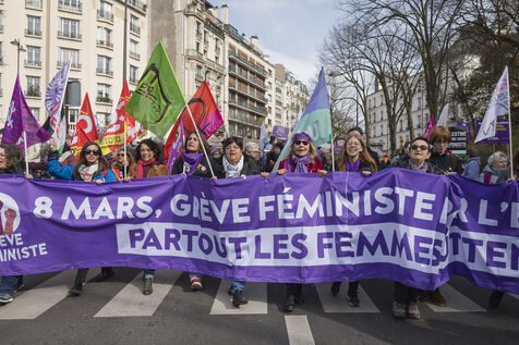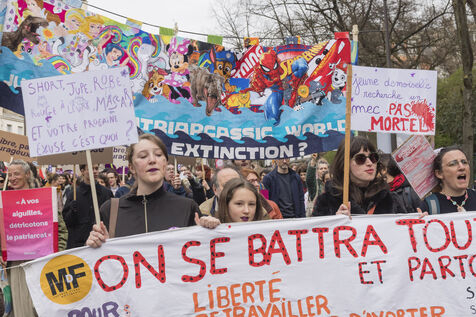 France, Paris, 2024-03-08. International Women's Rights Day, the day the abortion law was enshrined in the French Constitution. Tens of thousands of people marched through the streets of Paris, ending up at the Place de la Bastille. Photography by Pascal Sonnet / Hans Lucas.
