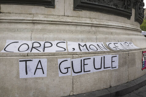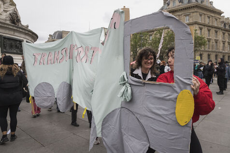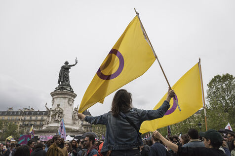 France, Paris, 2024-05-05. The demonstration at Place de la République in Paris on 5 May, called by the LGBTQI+ community to defend the rights of transgender people and the right to control their own bodies. Photograph by Pascal SONNET / Hans Lucas.