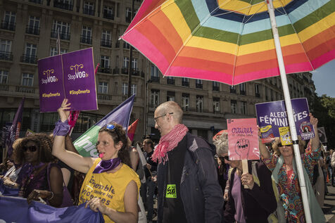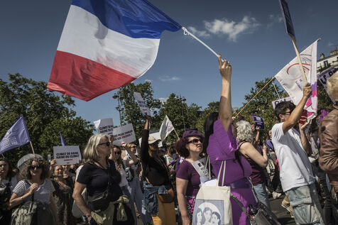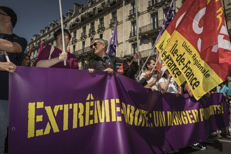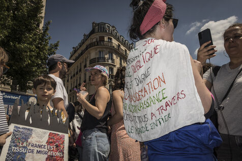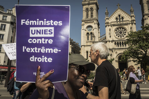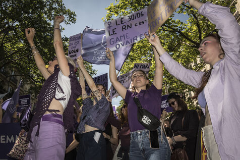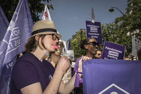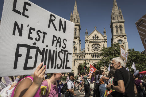 France, Paris, 2024-06-23. Thousands of demonstrators against right-wing extremism marched in Paris from Place de la République to Place de la Nation, on the call of feminist associations and various unions. Photograph by Pascal SONNET / Hans Lucas.