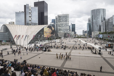 France, Paris, 2025-06-05. A dance performance on the esplanade de la Défense, organized by Benjamin Millepied, as part of the “La Ville Dansée” project. Photograph by Pascal SONNET / Hans Lucas.