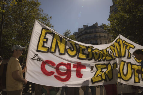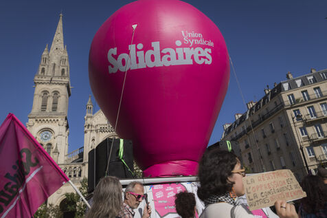 France, Paris, 2025-09-18. La manifestation contre les mesures budgétaires a rassemblée des dizaines de milliers de personnes à Paris. Photographie de Pascal SONNET / Hans Lucas.