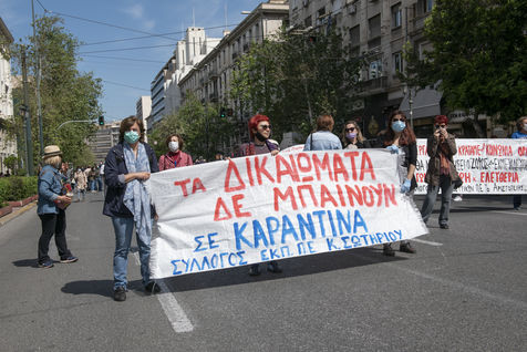 La marche du 1er mai s'est tenue à Athènes avec une large participation, malgré la décision du gouvernement grec de déplacer les mobilisations au 8 mai en raison des restrictions de sécurité liées aux coronavirus. Pendant la période de fermeture, les droits des travailleurs ont été mis en jeu, le gouvernement grec n'a pas trouvé le moyen d'inclure de nombreux freelances, artistes et scientifiques contractuels dans son programme d'aide financière COVID-19. Ce qui est intéressant dans la marche de cette année, c'est que les demandes des travailleurs se sont rencontrées dans la rue avec celles des activistes environnementaux et des demandeurs d'asile.
