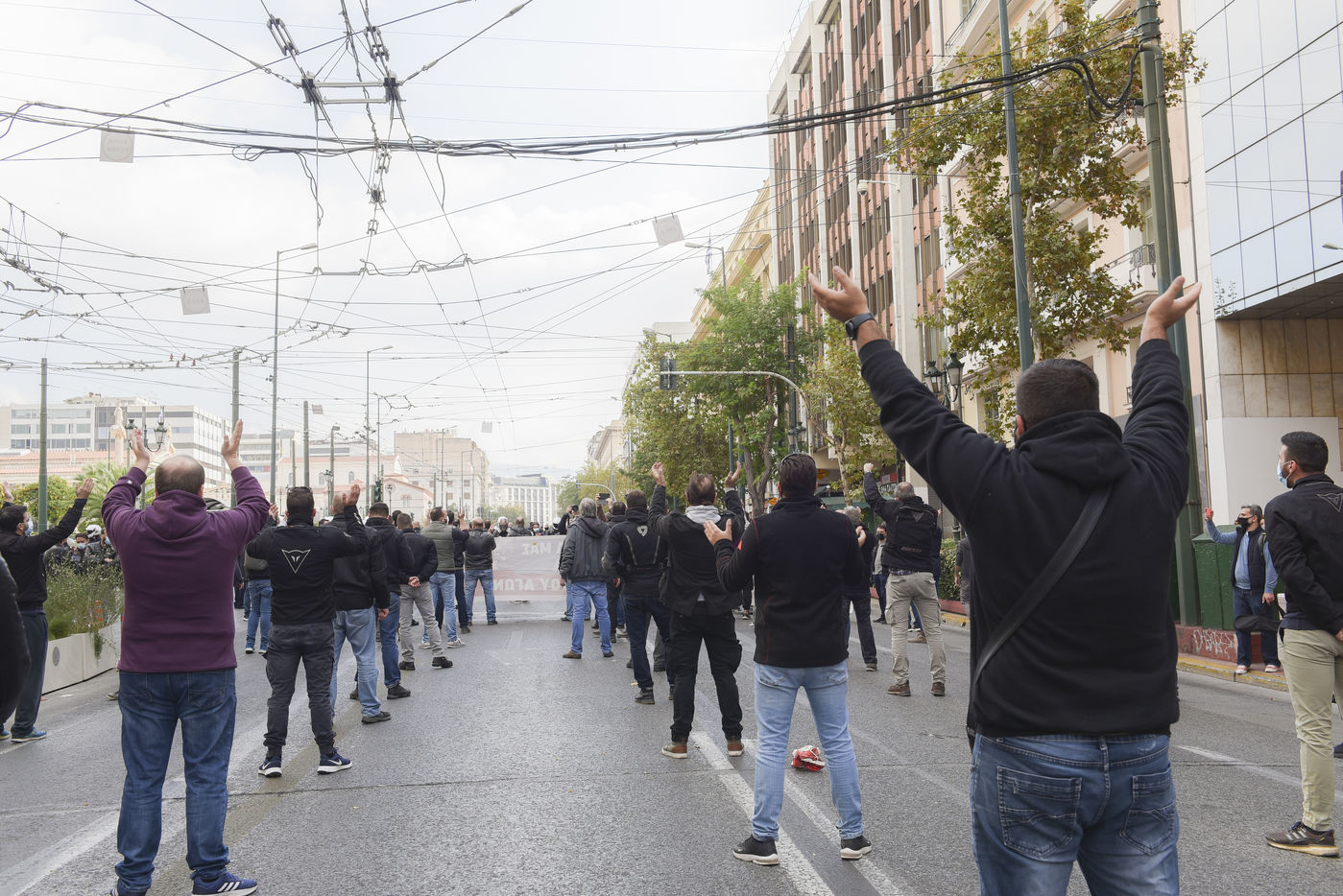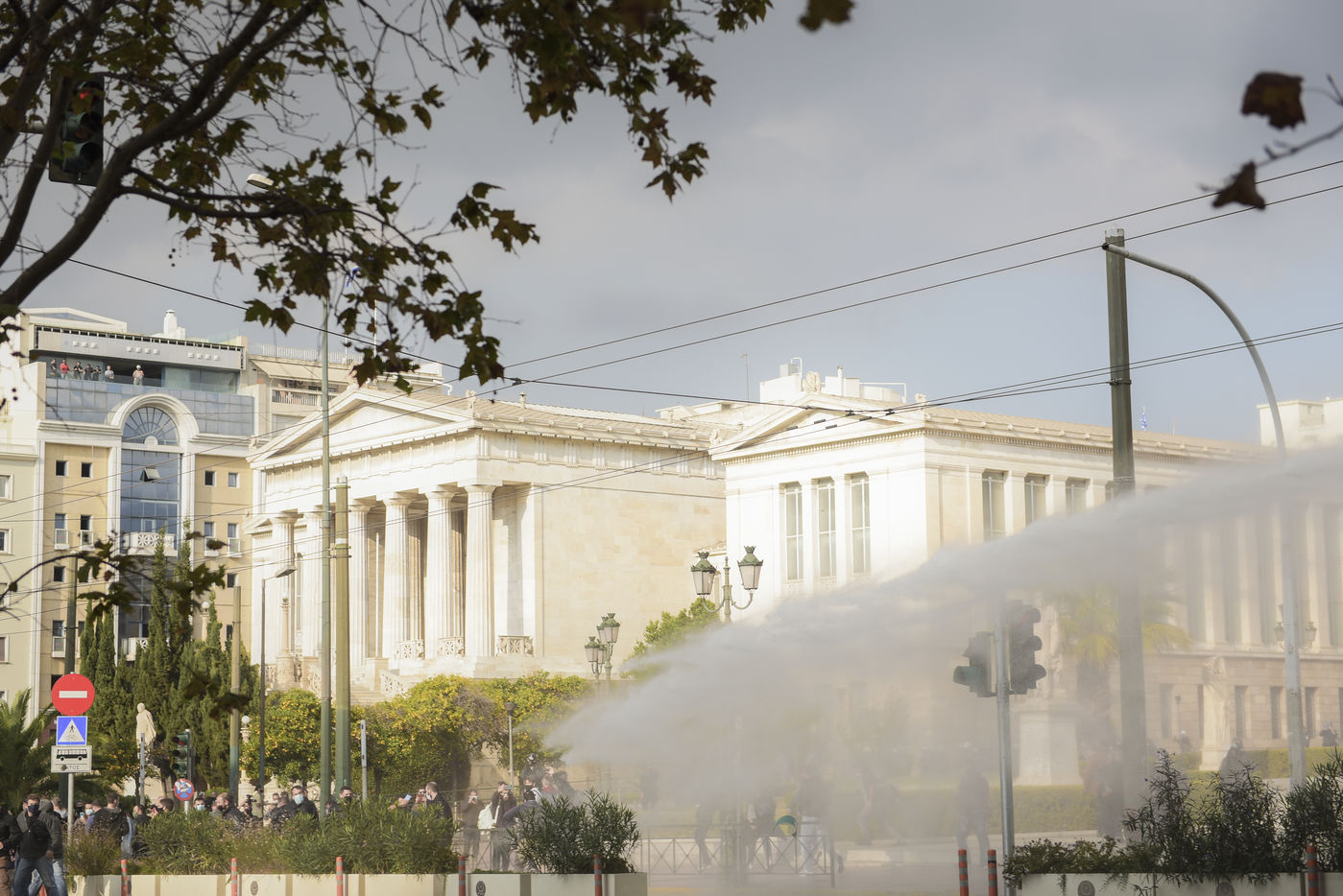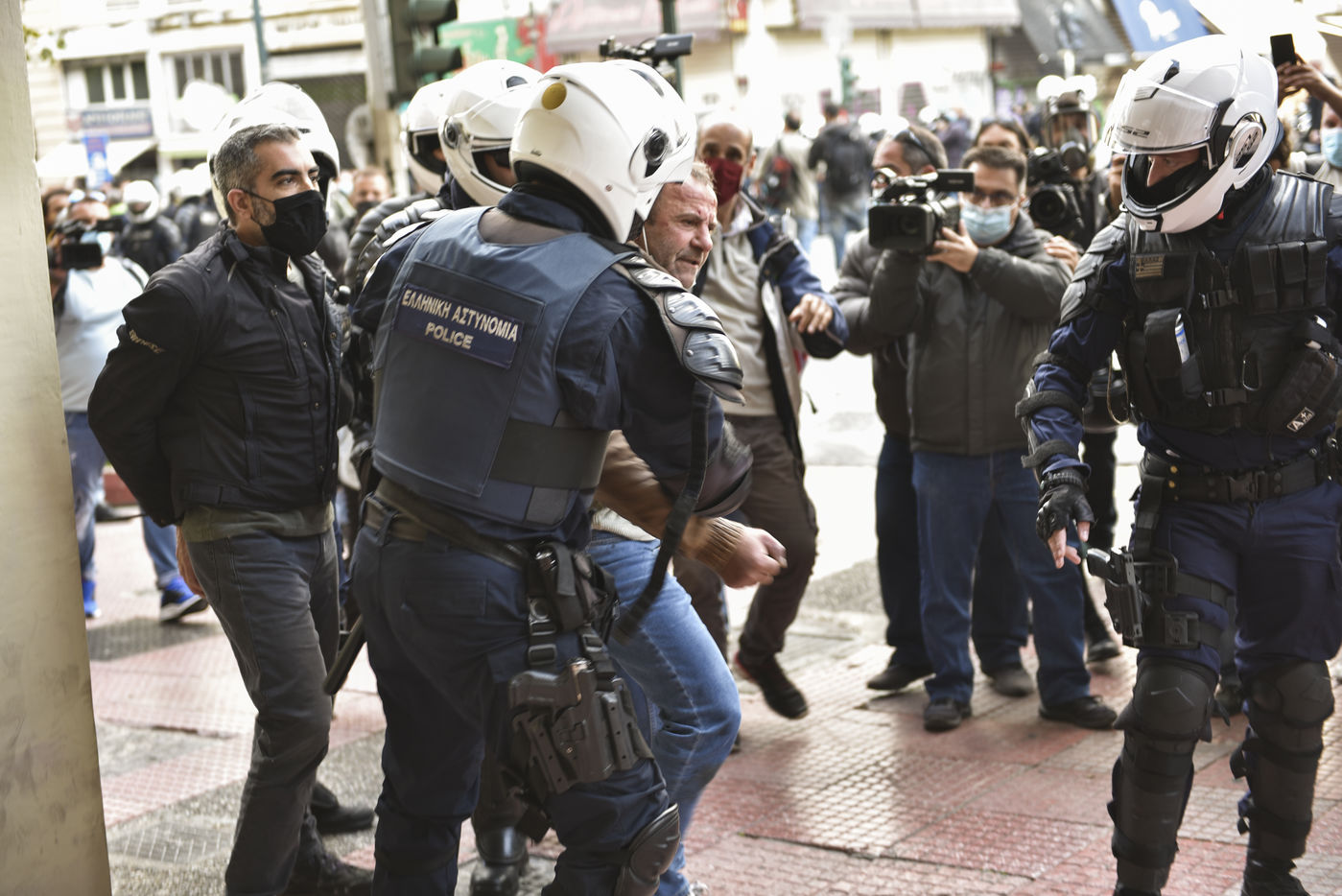 Malgré l'ordre, les membres du parti communiste grec et des groupes de gauche ont décidé de manifester pacifiquement en dépit de l'ordre, en respectant les mesures de sécurité, comme le port de masques et la distanciation sociale. Les quelques manifestants ont dû faire face à une violence disproportionnée et à une attitude provocatrice de la part des 6000 policiers qui étaient répartis dans le centre ville d'Athènes. Les policiers ont utilisé des gaz lacrymogènes et des canons à eau, tandis qu'ils poursuivaient les manifestants sur quelques kilomètres. En quelques heures, plus d'une centaine de personnes ont été arrêtées à Athènes.