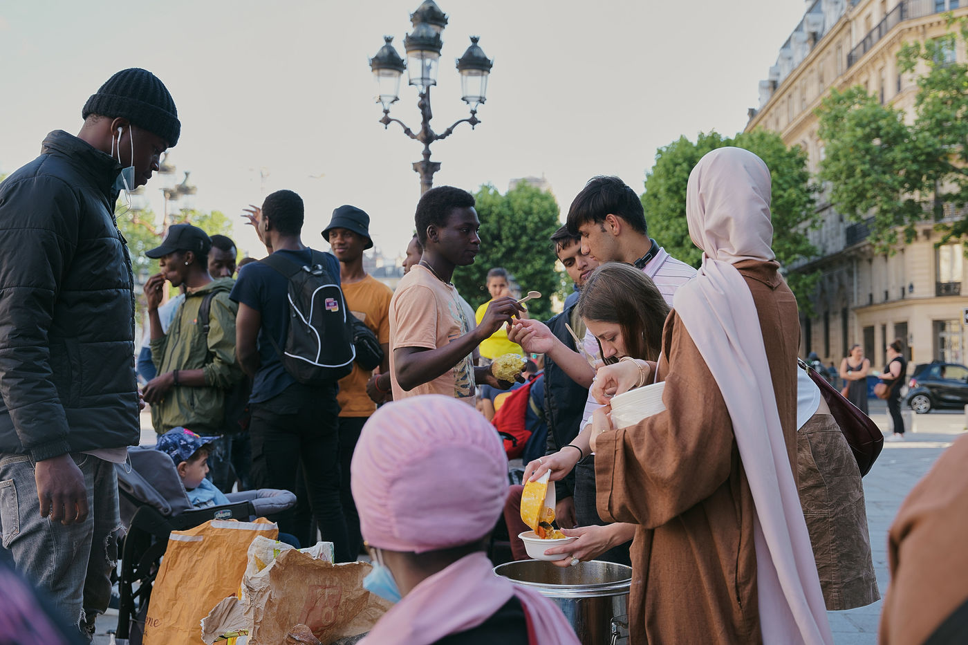 Utopia 56's volunteers meet many people with traumatic backgrounds, in addition to the violence of the street and of reception in France. Faced with the growing number of families on the street and the lack of care provided by the 115, the associations mobilise every day so that as many people as possible are accommodated for the night. Utopia 56's network of citizen accommodation enables the most vulnerable people to be sheltered every evening: families with infants or young children, pregnant women, single women or couples. They are accompanied to private homes, alternative locations or parishes. The next morning, they leave on their own and return at the end of the day to the Place de l'Hotel de Ville. Due to lack of space, every evening many people, including families with children, sick or elderly people and pregnant women, go to spend the night in a park outside Paris. They slept a few weeks earlier in Paris where they were woken up and chased away during the night by the police who confiscated their survival equipment.