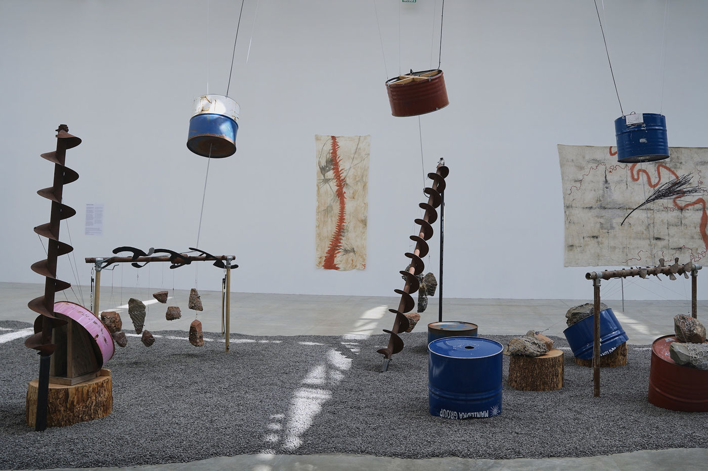 Abbas Akhavan, Amakaba x Olaniyi Studio, Asinnajaq, Huma Bhabha, Sebastián Calfuqueo, Megan Cope, D Harding, Karrabing Film Collective, Kate Newby, Daniela Ortiz, Solange Pessoa, Yhonnie Scarce, Thu-Van Tran, Judy Watson shows us that we are not "in front of the landscape", not "on the earth", but rather we are one with it, creating the "community of the soil" that Rachel Carson spoke of at the origin of the environmental movement.