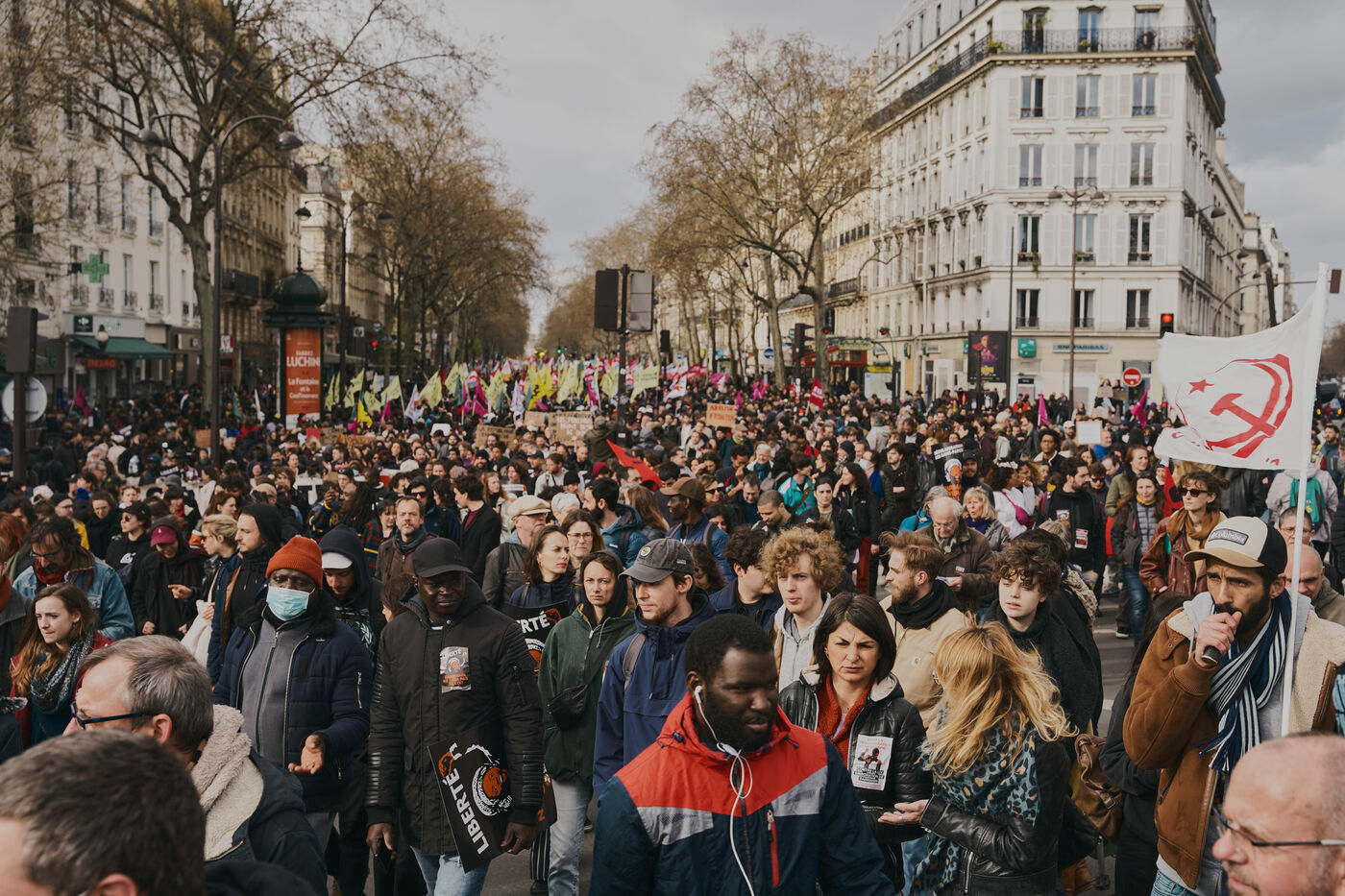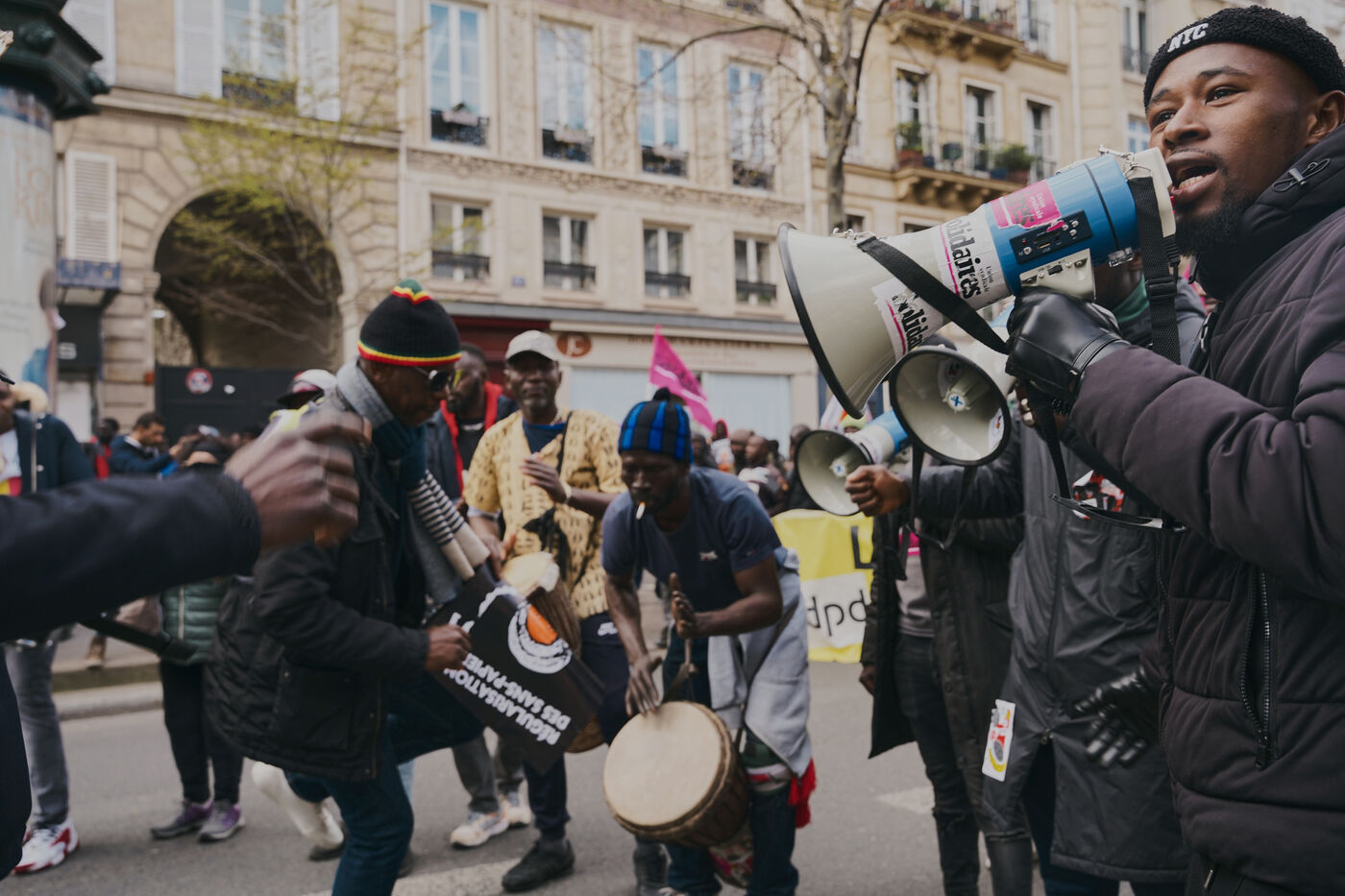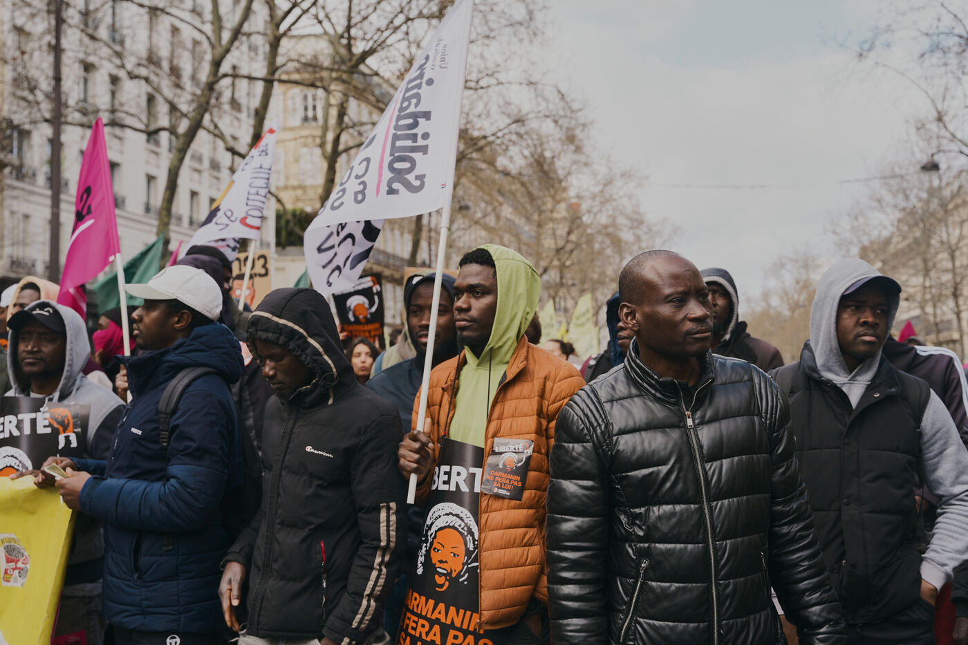 Le projet de loi immigration défendu par le ministre de l'Intérieur Gérald Darmanin prévoit plusieurs mesures pour renforcer la répression des personnes sans papiers en facilitant les arrestations, l'enfermement, et les expulsions. Elle vise à la fois à augmenter le nombre d'OQTF (obligation de quitter le territoire) qui s'élève déjà à plus de 100 000 par an et le nombre de places dans les centres de rétention administratives CRA, prévoit la refonte de la Cour Nationale du Droit d'Asile et la création d'un titre de séjour « métiers en tension ». Avec plus de 20 textes de loi en 30 ans, la France ne cesse d'adopter des mesures toujours plus répressives à l'encontre des personnes exilées. Plus d'une vingtaine d'associations de personnes exilées ou de soutien à leurs droits se sont mobilisées ce samedi 25 mars à Paris pour montrer que d'autres politiques migratoires, respectueuses de la dignité et des droits fondamentaux, sont nécessaires.