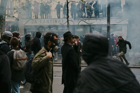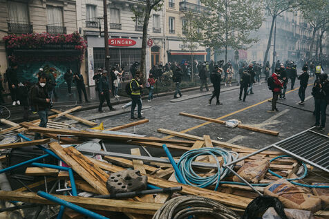 May Day demonstration in Paris, workers' day, revolutionary day of international solidarity against repression and thirteenth day of mobilization against the pension reform.
