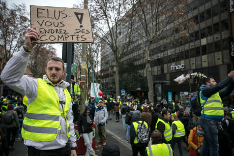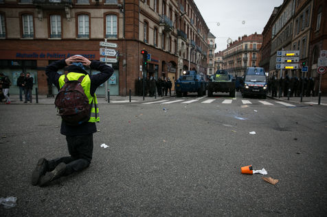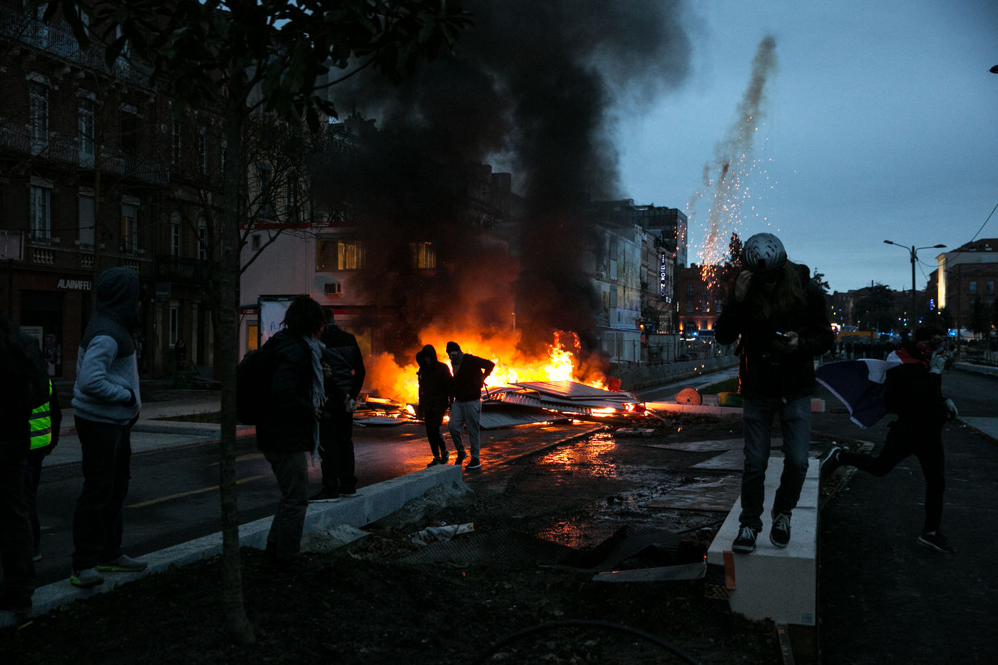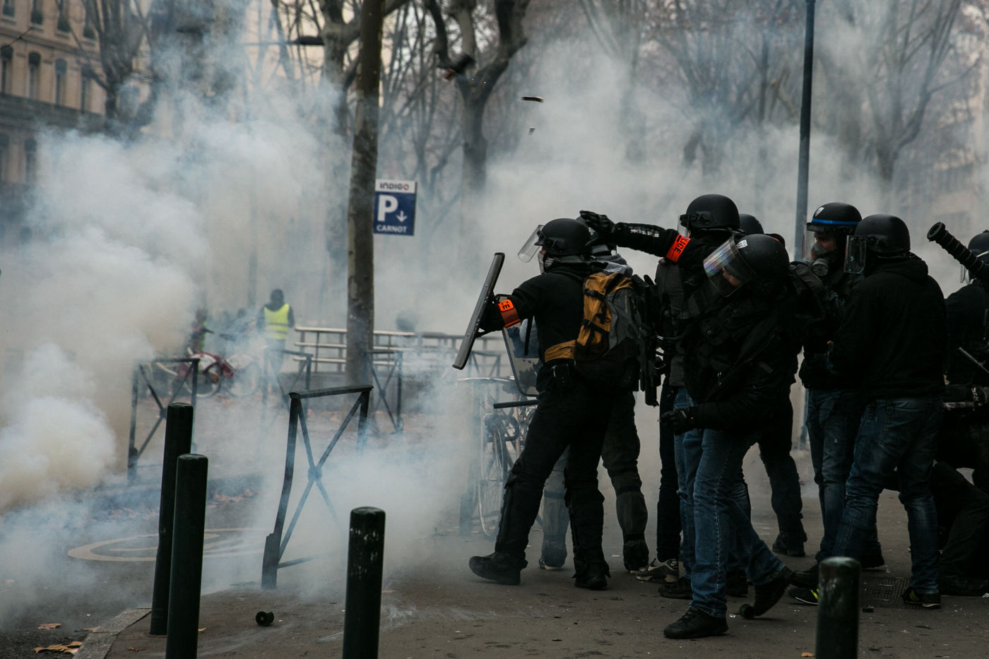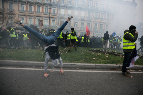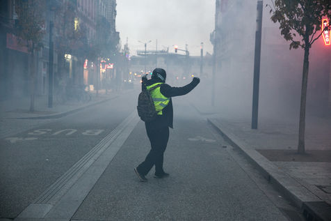 Demonstrations of the yellow vests on 15 December 2018 as part of Act V of their movement. While the roadblocks were calm, the demonstration in the centre of Toulouse, which according to the prefecture gathered more than 4,500 people, quickly spread after tear gas from the police forces.