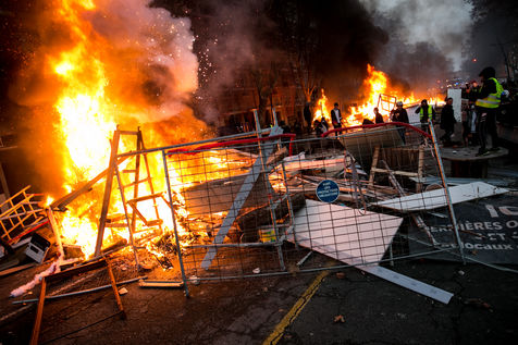 Manifestations des gilets jaunes le 8 décembre 2018 dans le cadre de l'acte IV de leur mouvement. A Toulouse, une manifestation réunissant plusiers milliers de personnes dégenère rapidement en guérilla urbaine.