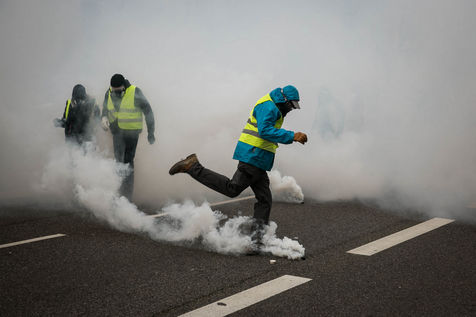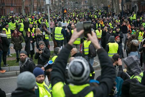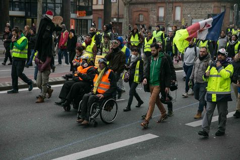 Demonstrations of the yellow vests on 29 December 2018 as part of Act VII of their movement. In Toulouse, a demonstration gathering several thousand people quickly degenerated into urban guerrillas. At least one seriously injured person has lost an eye and dozens of lighter ones are reported in the ranks of the demonstrators. The prefecture announced that two police officers were "slightly injured".