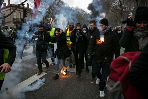 Manifestations des gilets jaunes le 29 décembre 2018 dans le cadre de l'acte VII de leur mouvement. A Toulouse, une manifestation réunissant plusiers milliers de personnes dégenère rapidement en guérilla urbaine. Au moins un blessé grave a perdu un oeil et des dizaines plus légers sont à déplorer dans les rangs des manifestants. La préfecture a annoncé que deux policiers "ont été légerement blessés".