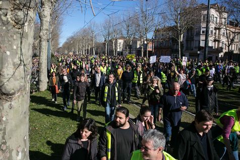 Demonstrations of the yellow vests on 16 February 2019 as part of Act XIV of their movement. In Toulouse, a demonstration gathering several thousand people peacefully took to the streets of the city until clashes broke out in the city centre.