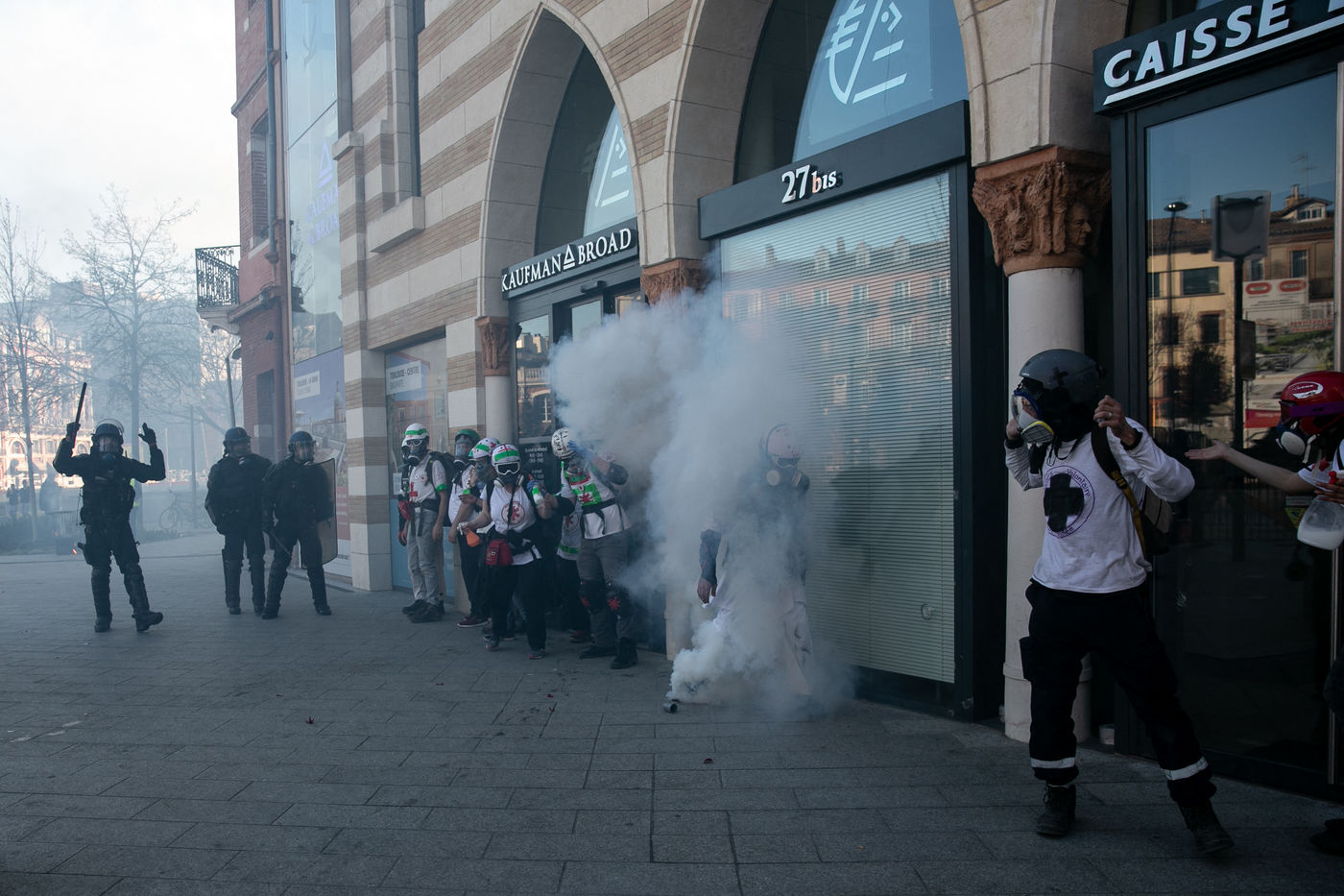 Demonstrations of the yellow vests on 23 March 2019 as part of the XIX act of their movement. Many thousands of people demonstrated in Toulouse. Some demonstrators managed to reach the Capitol Square despite a ban on demonstrations. Police forces charge without apparent cause at the beginning of the demonstration, which then continues in the city centre. Clashes broke out. While the number of injured is unknown, eight first-aid workers and three journalists were slightly injured, the health care teams denounce the fact that they were deliberately targeted.