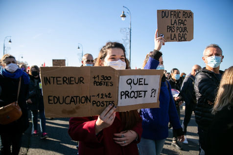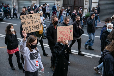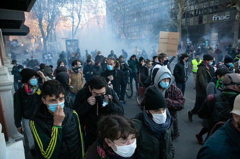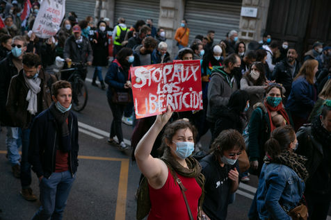In full confinement, several thousand people demonstrated in Toulouse against the government's health policy, the so-called "global security" law and to demand more resources for the public hospital, 21 November 2020.