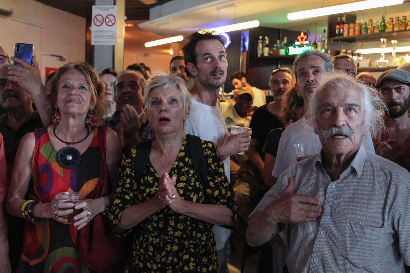 Toulouse, activists, deputies and defeated candidates of the Nouvelle Union Populaire Ecologique et Sociale (NUPES) gather in a bar to follow the announcement of the results of the second round of the legislative elections, 2022/06/19.
