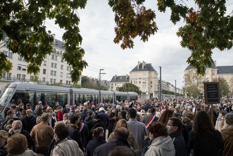 Rassemlement à Caen, place de la Résistance, en hommage à Samuel Paty, le professeur assassiné ce vendredi 16 Octobre à Conflans-Sainte-Honorine.