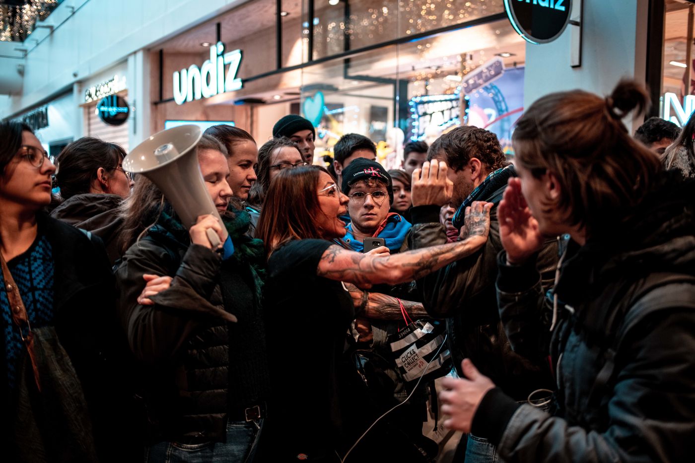 Pour manifester leur opposition au Black Friday, à la surconsommation, XR organise le Bloc Friday, en occupe un symbole de la surproduction et de la surconsommation.