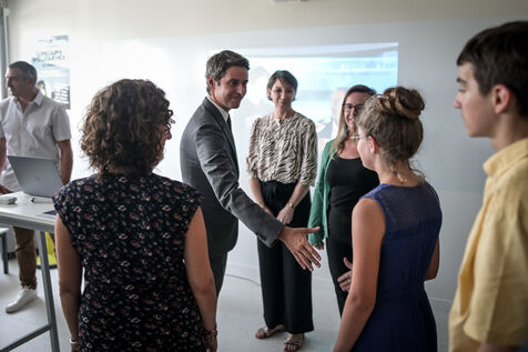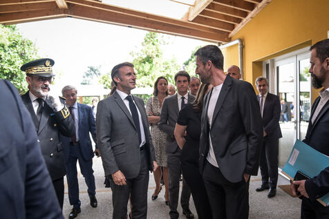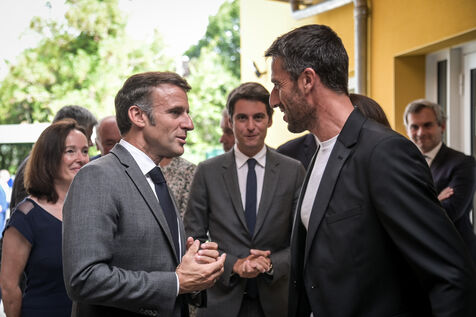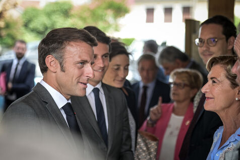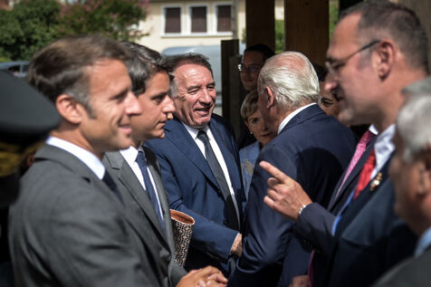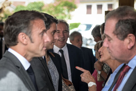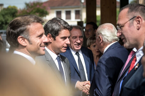 He is accompanied by the Minister of National Education, Gabriel Attal; the Minister of Sports, Amélie Oudéa-Castéra, and the mayor of Pau, François Bayrou, secretary general of the National Council for Refoundation.