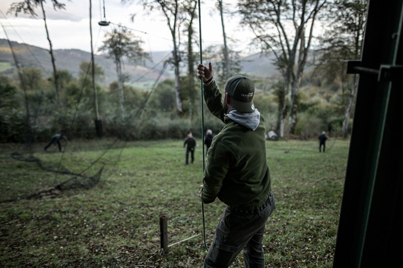 This ancestral form of hunting, whose origins remain obscure, is thought to have been invented by monks in the 16th century. Since then, nothing has changed: the same gestures, the same codes, rudimentary equipment, a wooden backdrop and a wild world.
