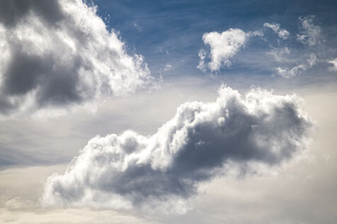 Des nuages dans le ciel de Pau, Pyrénées Atlantiques. Ciel menaçant, nuages noirs et nuages blancs. La grisaille d'un ciel de plomb. Les cumulus, stratus et cirrus. La pluie arrive et le soleil se cache. Paysage onirique qui inspire la rêverie. Dans les cieux les rêves ne sont pas loin. L'imagination et le réel au service de la douceur de vivre. La plénitude n'est jamais loin dans les nuées bleues. L'olympe, le pays des dieux assis sur des cumulonimbus moelleux. Un ciel de rage ou un ciel d'orage. L'évanescence de l'esprit. La spiritualité pour du réconfort. Se changer les idées et croire en ses rêves. La distance est relativité. La pollution de l'air pur et de l'atmosphère est dû au rejet du Co2 et cause des problèmes de respiration.