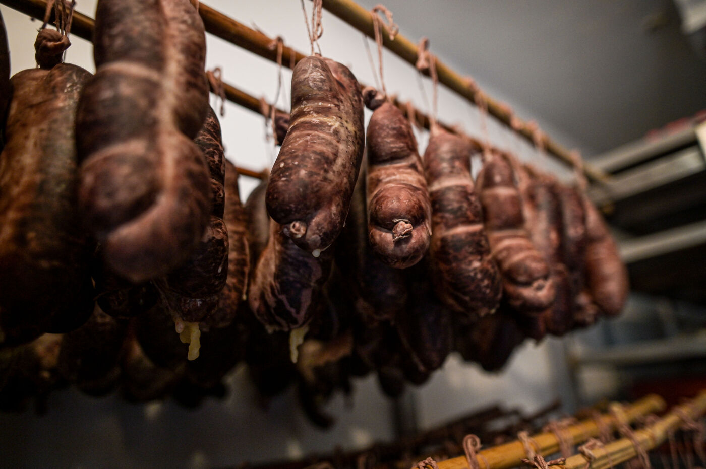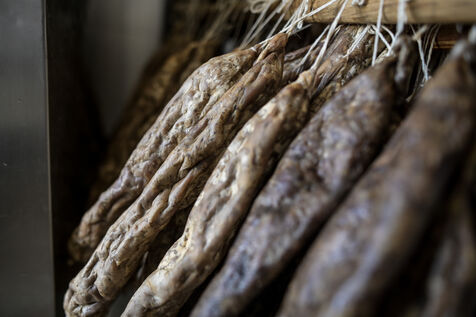 The 3rd generation of the Crouzeilles-Léris charcuterie, founded in Gan in 1933, is one of the few producers of old-fashioned andouille, typical of the Béarn region. Huguette and Jacky Léris have resigned themselves to closing sooner than expected, due to the rise in electricity prices as a result of the war in Ukraine. The andouille is dried in an all-wood kiln for six to eight months. It is then wrapped in rags and cooked at low temperature for 24 to 30 hours.