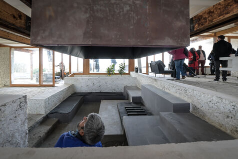 France, Lanneplàa, 2022-02-05. La Maison Cazenave, créée par l?architecte Hans Demarmels, trône sur les hauteurs du village de Lanneplaà, près d?Orthez. Les nouveaux propriétaires lui rendent son aspect originel.