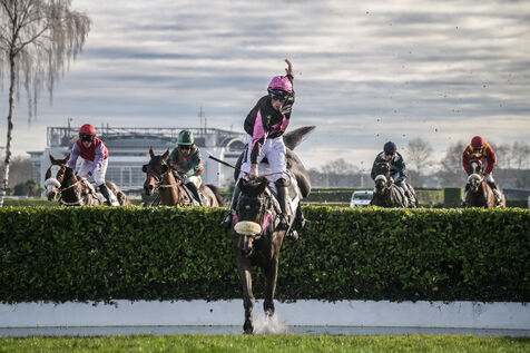 France, Pau, 2024-01-14. Chaque année, de novembre à février l?Hippodrome de Pau organise pour une saison de courses ce que l?on appelle le « Meeting d?Hiver » avec 30 journées et ses 239 courses. Ce Meeting attire chaque année plus de 56 000 spectateurs. Les grandes épreuves et rendez-vous phares de la saison sont le Grand Prix de Pau ou le Grand Cross de Pau.