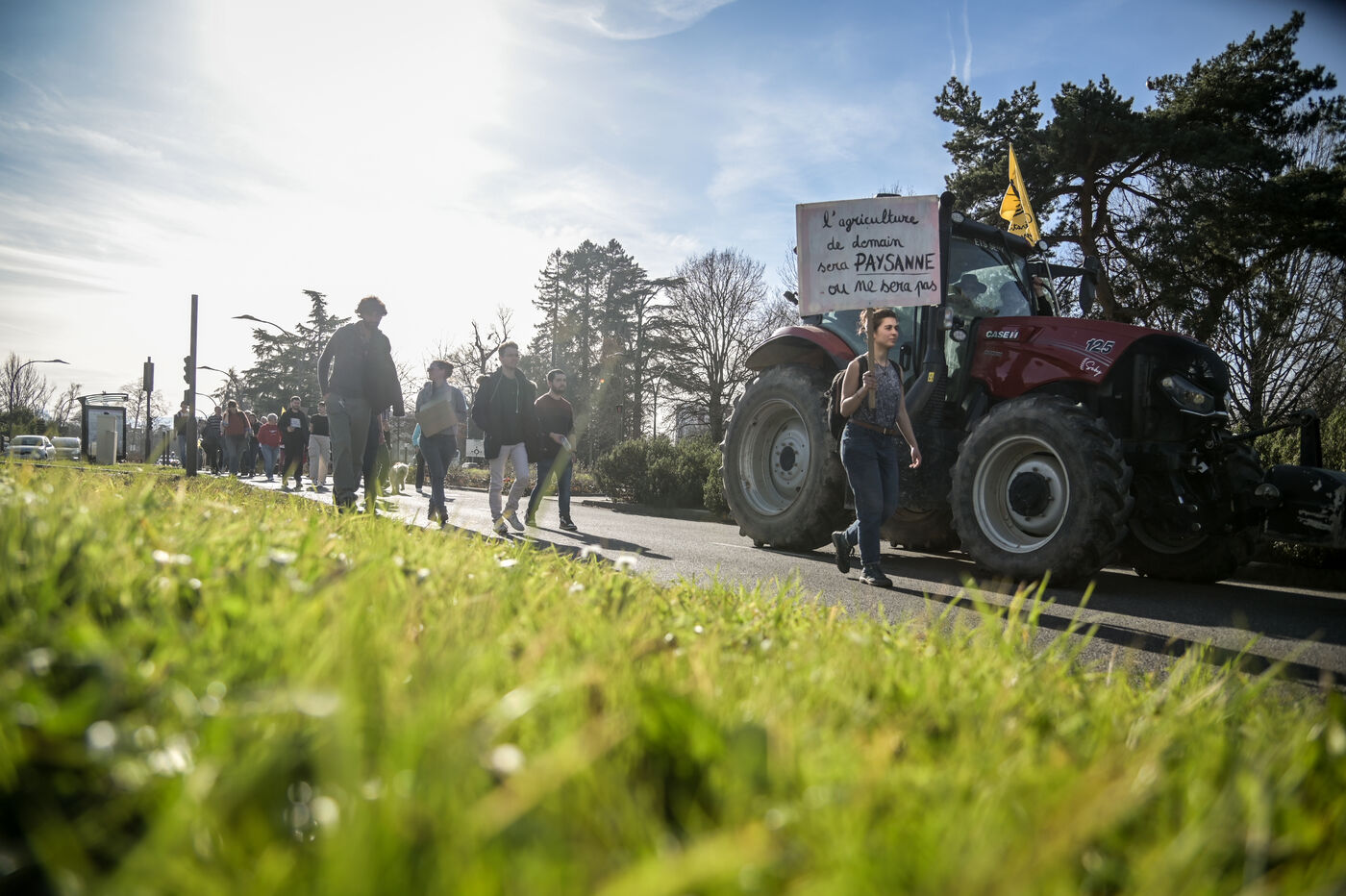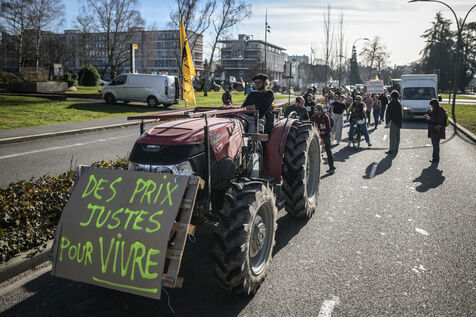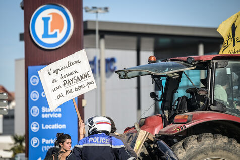 In Pau, on Saturday January 27, 2024, the Confédération paysanne joined the agricultural protest movement, taking over the traffic circle opposite the Chamber of Agriculture before launching a snail march to the nearby Leclerc supermarket. Yellow vests and the CGT were also on hand to provide support.